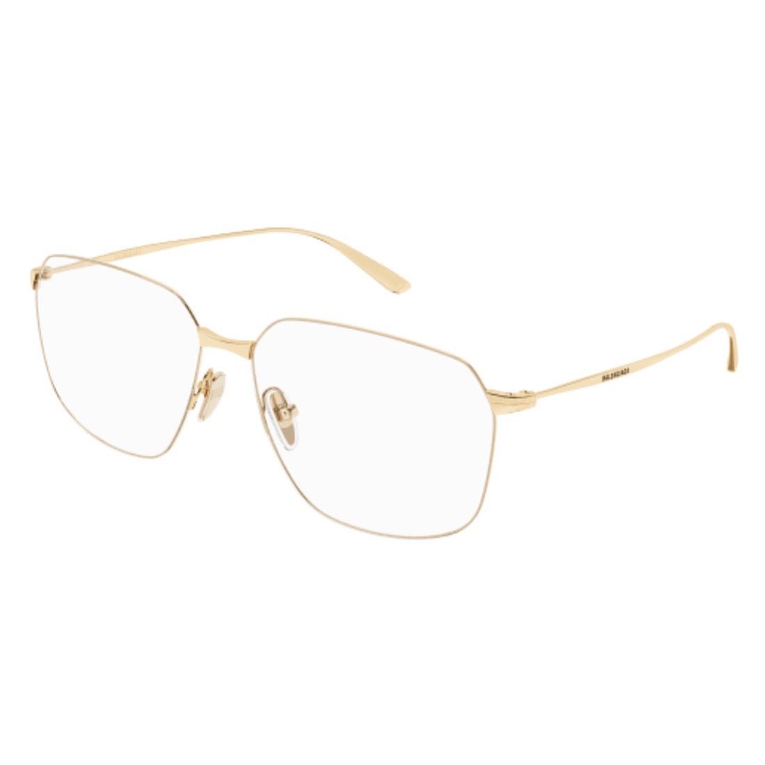 A new evolution of the Invisible concept, featuring a thin and lightweight metal structure and a feminine oversized rectangular frame, with a laser-engraved logo for a touch of elegance and understatement. BALENCIAGA - BB0414O-004, the discreetly recognizable and elegant brand.