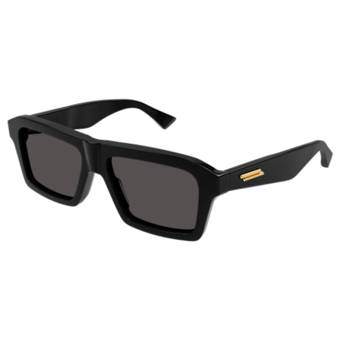Rectangular sunglasses for men by Bottega Veneta. The acetate frame features clean, geometric lines and generous, assertive proportions. The distinctive temples are adorned with a double metal bar, a signature of the brand, while the Bottega Veneta logo sits elegantly on the top. An essential accessory that combines stylistic boldness with Italian refinement.