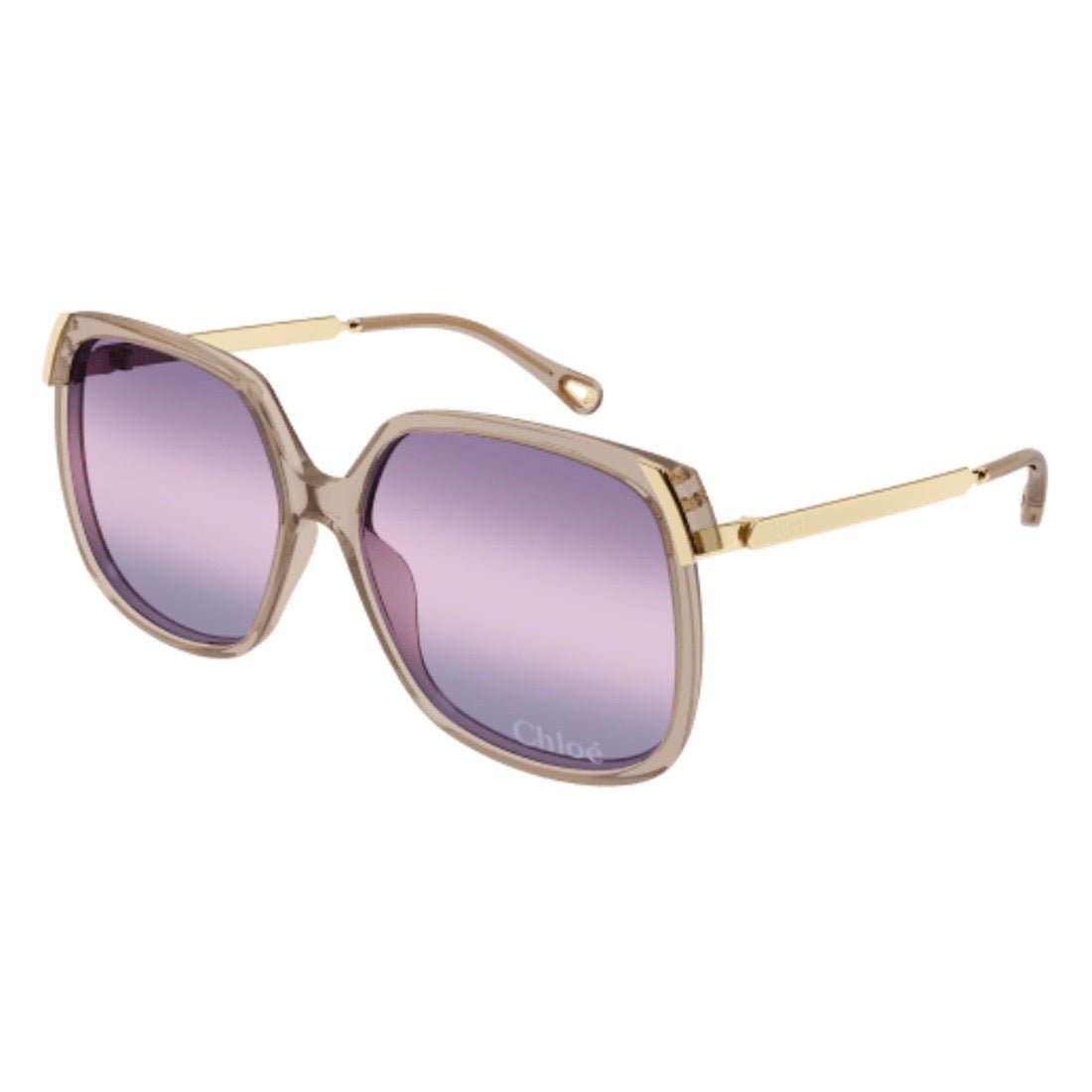 Discover CHLOE - CH0286S-004: Oversized frame, metal temples, lenses engraved with the Chloé logo. Unique and minimalist link between temples and front. The exclusive gradient lenses offer a unique and distinctive look. Express your style with passion and elegance.