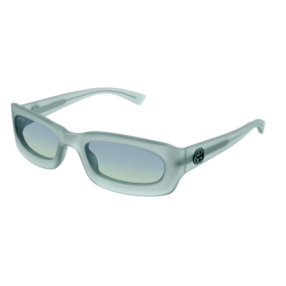 Discover the futuristic GG1786S-005 model from GUCCI. Its wraparound rectangular design is perfect for summer with its frosted finish. The metal GG Interlocking logo adds a touch of sophistication, while the matte colors and tone-on-tone logo create an iconic look. Enjoy a unique and on-trend style with these sunglasses.