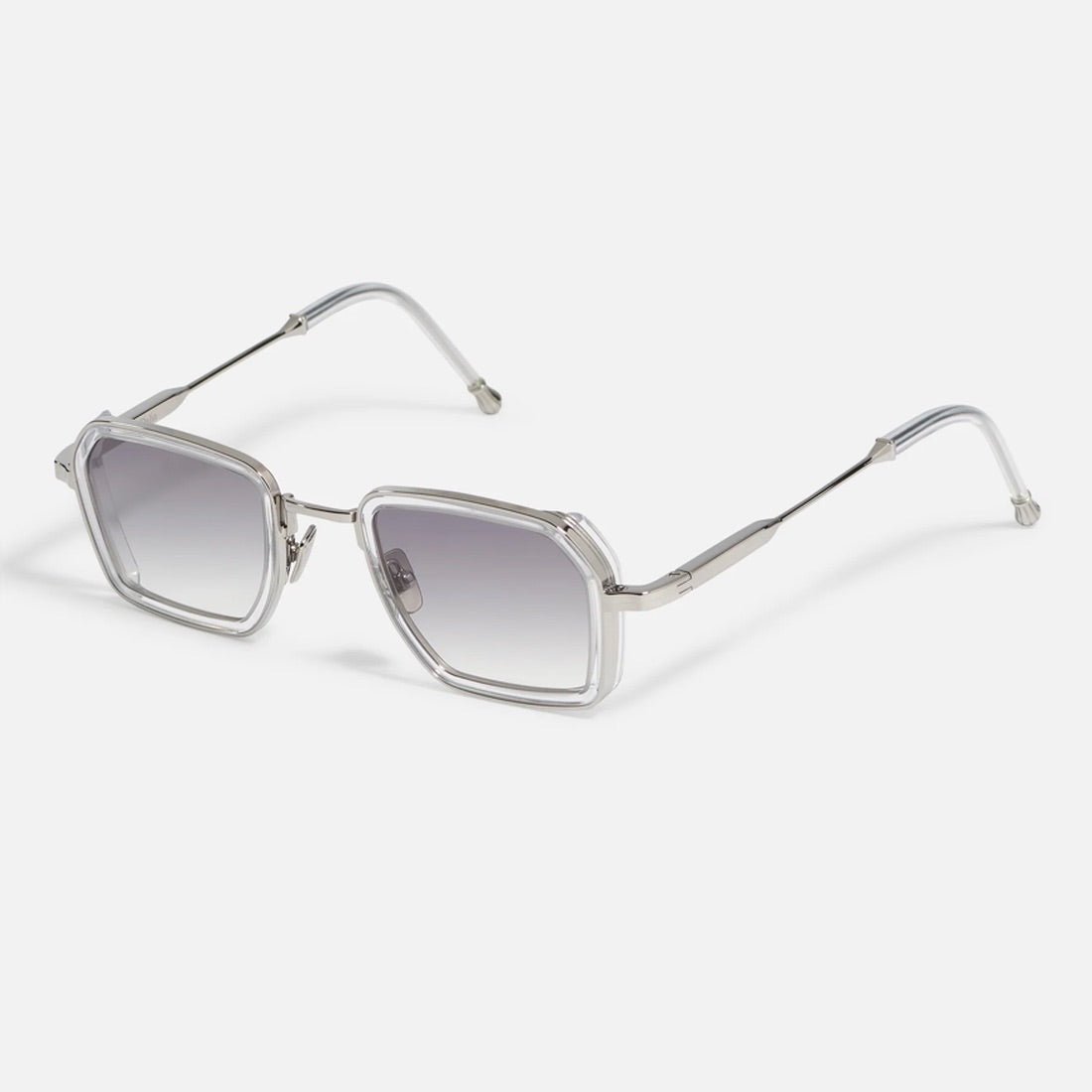 Immerse yourself in the elegant style of JOHN DALIA - Cillian - C183. Its masculine rectangular shape and cut-out acetate frames stand out with its 4mm metal touch engraved in relief. Its signature custom-made crystal acetate and rutenium-plated alloy temples add extra sophistication. Gray CR39 lenses with AR treatment. Case and cleaning cloth included.