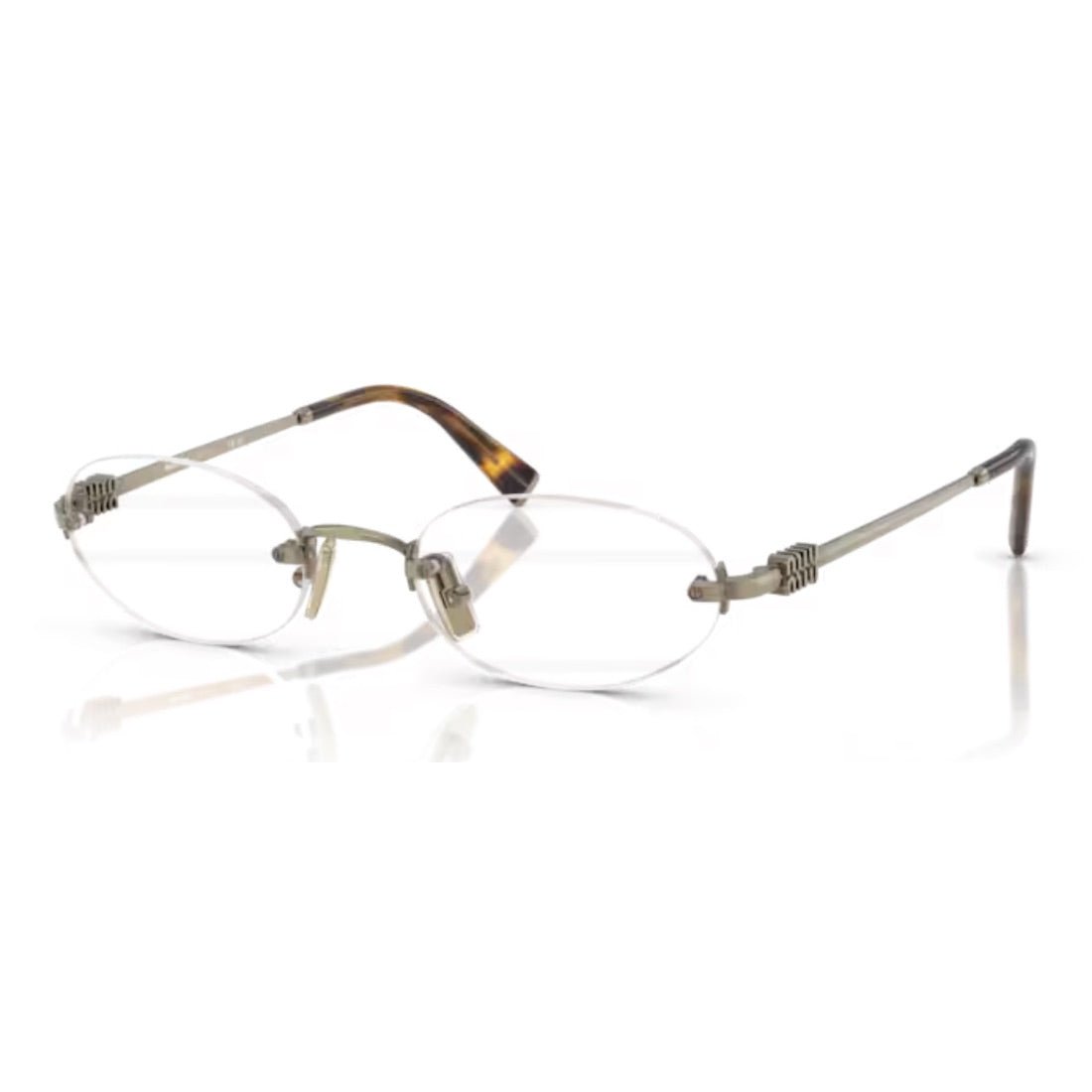 Miu Miu knows details don't need to be imposing to be noticed or appreciated. These elegant rimless optical glasses feature a discreet metallic brand logo delicately placed on the thin metal temples, finished with stylized acetate tips.