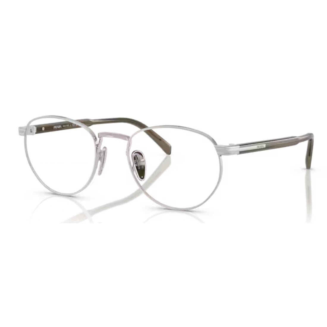 These PRADA PR B52V optical glasses combine elegance and modernity thanks to a subtle combination of materials. Their round metal frame, available in silver, gold, or gunmetal, perfectly complements acetate temples available in several refined colors. Each temple is adorned with a discreet metal plaque bearing the Prada logo, a symbol of sophisticated and timeless style. Ideal for asserting your look with distinction, these glasses embody Prada's craftsmanship and iconic design.