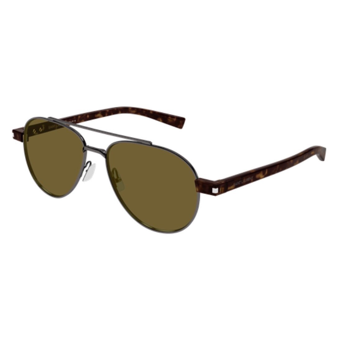 This masculine frame combines elegance and character with its classic pilot shape enhanced by a distinctive double bridge. Its iconic frame angles and the logo engraved in full on the temples demonstrate Saint Laurent's refined craftsmanship, for a confident and sophisticated style for everyday wear.