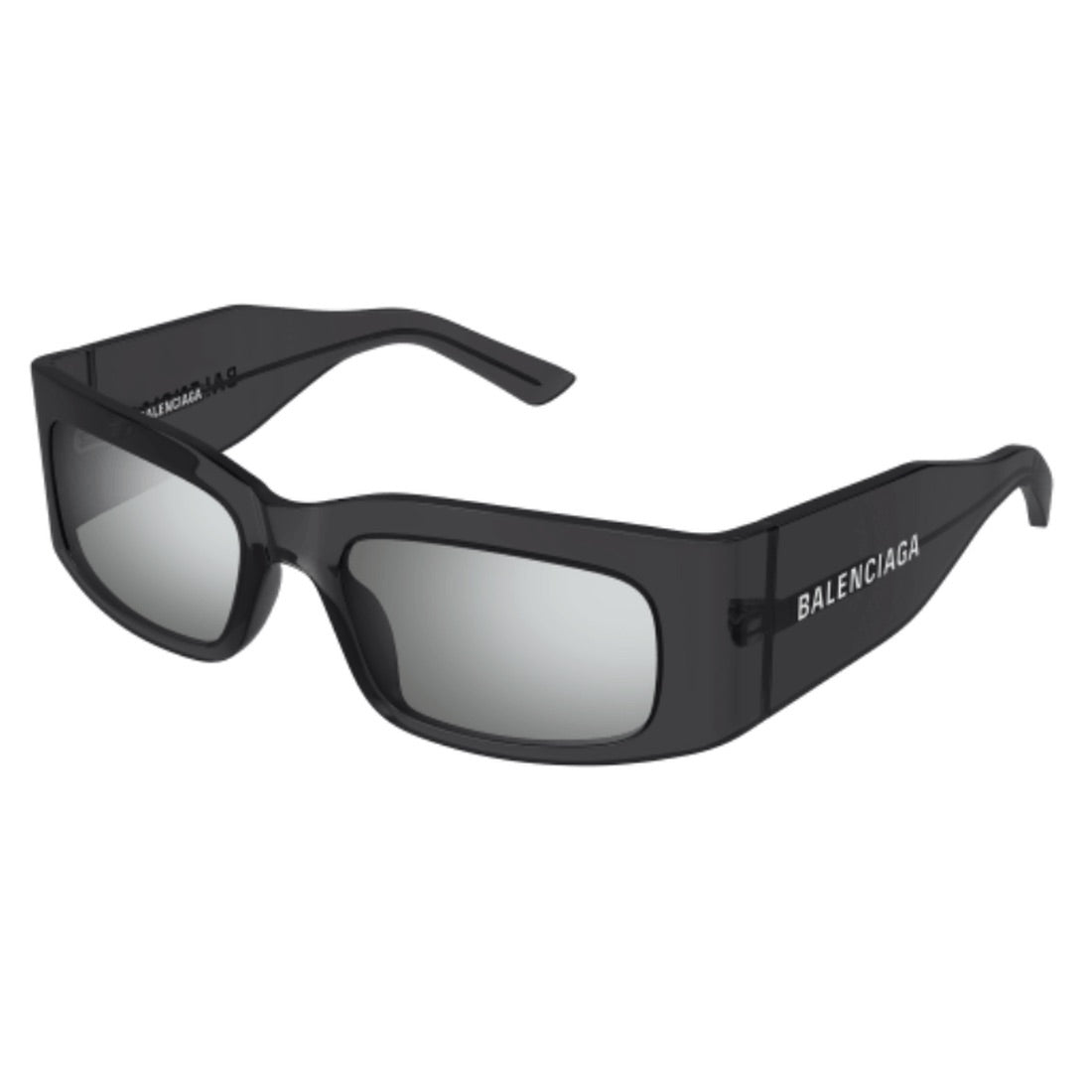 The logo in letters remains the main character of these BALENCIAGA glasses - BB0328S-003. With their Flat concept, the rectangular HD acetate frames have bent ends for a narrow style. Bold temples adorned with the Balenciaga logo add a touch of luxury to these glasses.