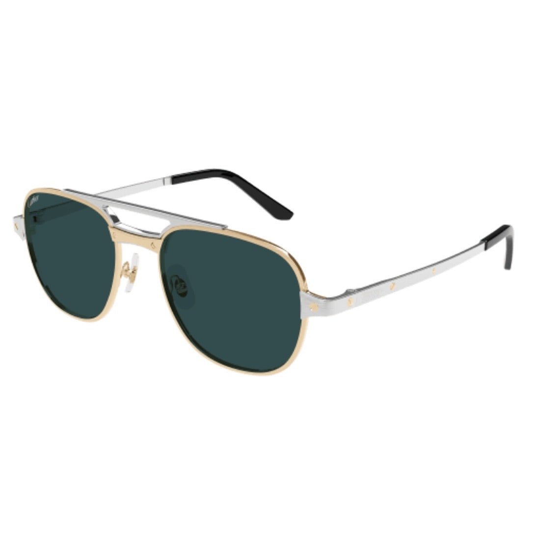Discover the bold new bi-layer construction of the Cartier CT0477S-003 frame. Featuring the iconic Santos screws on the front and temples, this classic navigator model with full rimming offers a bold and masculine look. Available in precious gold, platinum, dark ruthenium and black PVD finishes, this frame combines style and comfort with its acetate temple tips.