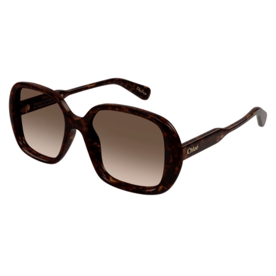 Discover CHLOE - CH0222S-001 from the Gayia line, with its lighter and vintage design. The thick, pure acetate frame, combined with strong, tinted organic nylon lenses, provides unparalleled comfort. Printed in gold enamel inside the temple, Gayia's manifesto tells an impactful story. For limited edition colors, each piece is individually numbered on the tip of the temple.