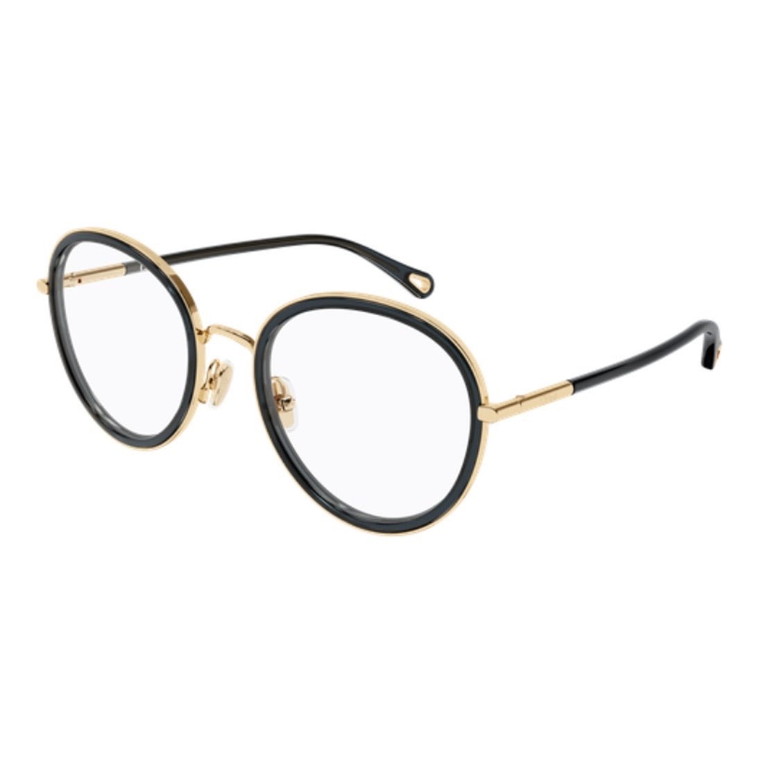 Discover the timeless elegance of these round frames by Chloé. Their hybrid design combines a refined metal front with a premium acetate rim, creating a subtle and sophisticated contrast. The slender tubular temples, adorned with delicate metal accents, complete this clean silhouette. Perfect for making a stylish statement with understated charm, this pair embodies the essence of accessible Parisian luxury.