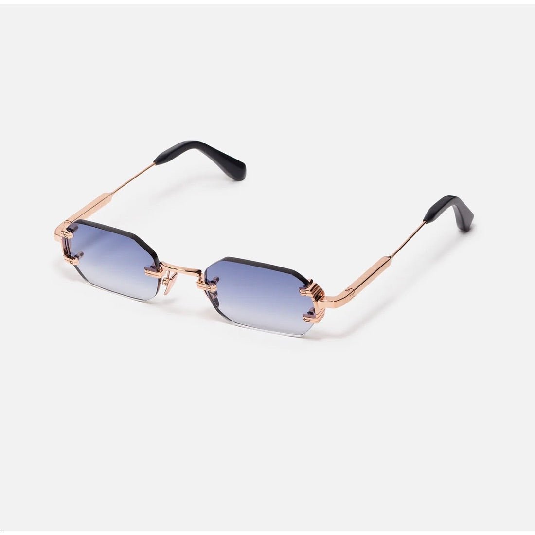 Discover the minimalist elegance of the Amaru frame. This unisex rimless style combines sophistication and lightness with its rose gold-plated stainless steel frame and light blue gradient lenses. The rose gold nose pads and navy blue acetate temples offer optimal comfort, while the anti-reflective coating ensures crystal-clear vision. A timeless piece for those who seek both style and quality.
