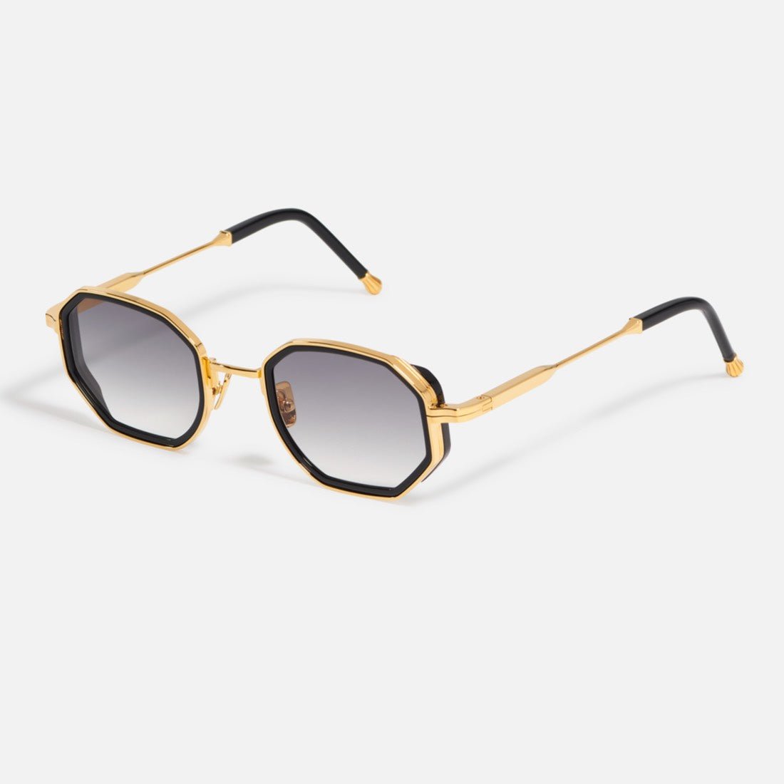 Discover the JOHN DALIA - KEATON - C100 glasses! A unisex octagonal shape with cut-out acetate frames that stand out from the 4mm of line-engraved metal. John Dalia's new signature temples with their engraved ends add a touch of originality. The infinite black acetate frame and 22-carat yellow gold-plated alloy (5µ and jewelry hallmark inside the temple) complete these glasses with gradient gray lenses in CR39 and AR treatment. Reference C-100. Case and cleaning cloth included.