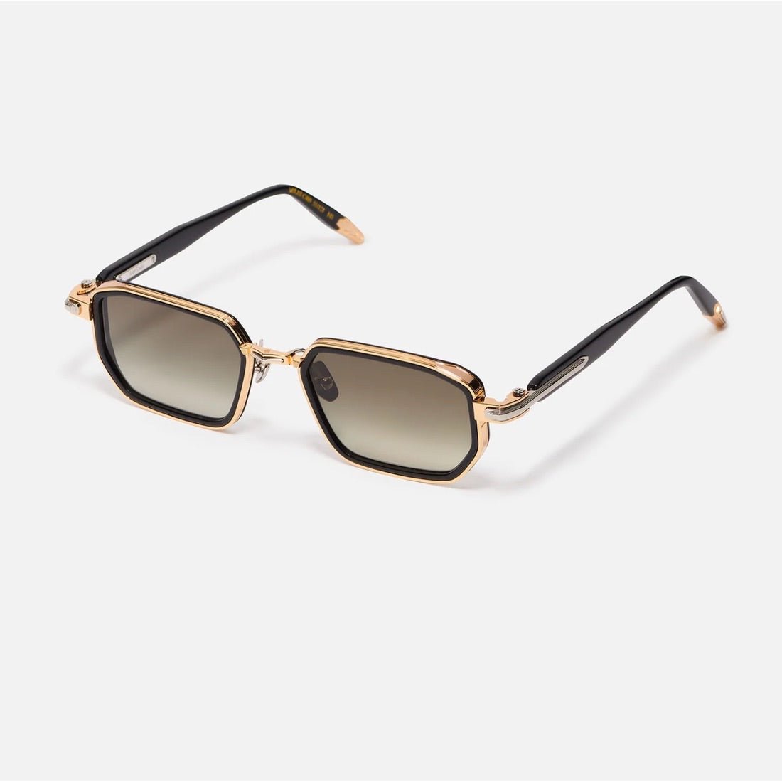 JOHN DALIA - MILES - C409 embodies excellence in contemporary optical design. This unisex rectangular frame harmoniously blends a titanium structure, metallic details, and acetate elements for a refined and timeless result. The yellow gold-plated titanium core is enhanced with platinum-plated (3µ) decorative elements, while the glossy black acetate temples extend seamlessly into sculpted metal tips. The projected bridge accommodates titanium nose pads, creating an elegant transition between the materials. The CR39 gradient G15 lenses feature an internal anti-reflective coating for optimal vision. Every detail, from subtle variations in thickness to finely striated finishes, reveals the distinctive character of this creation. Comes with a protective case.
