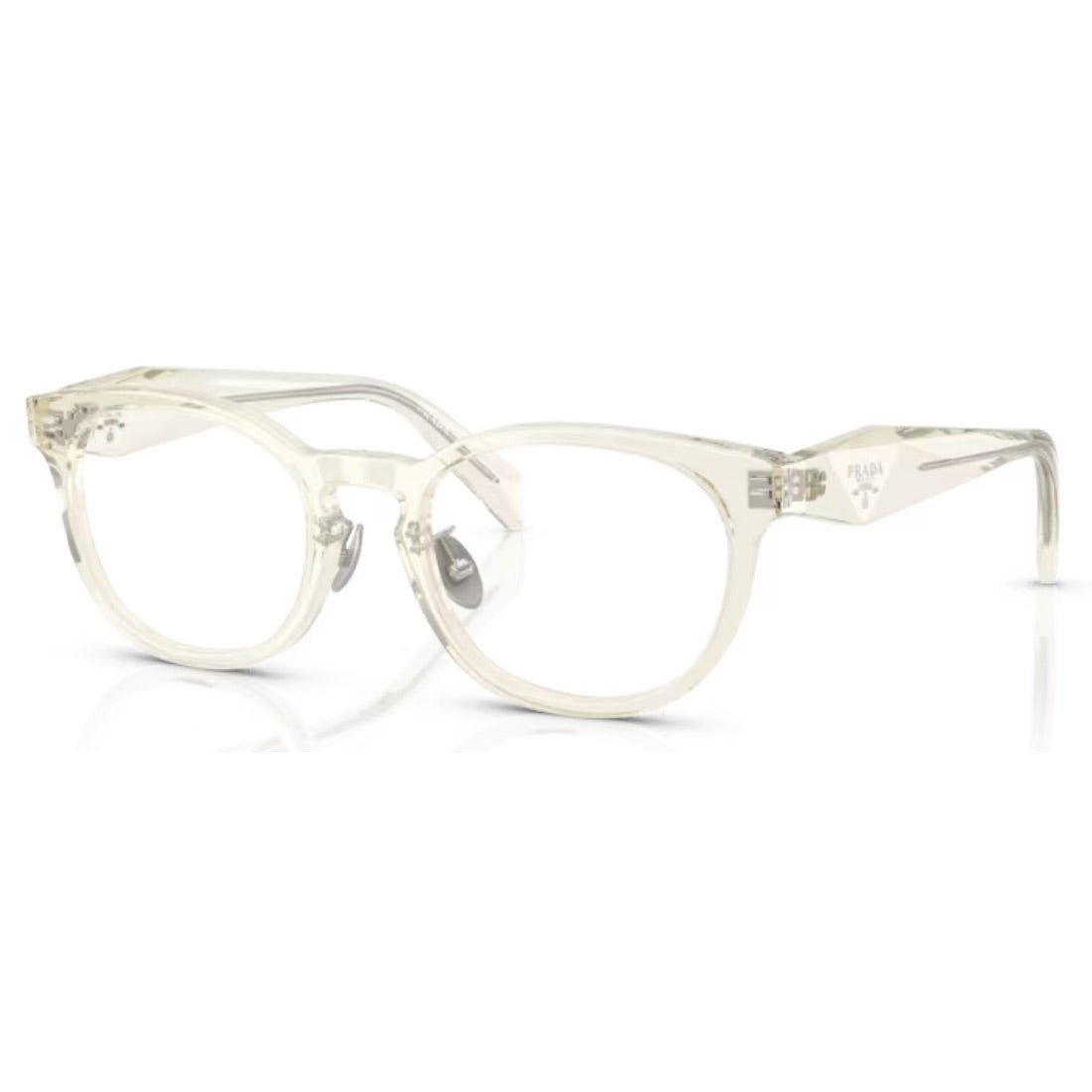 The PRADA PR B06VD 19X1O1 optical glasses combine classic elegance with modernity thanks to their refined phantos frame. The faceted acetate temples highlight Prada's famous triangle logo, reminiscent of the brand's iconic handbag. Featuring ergonomic nose pads, these glasses offer optimal comfort while enhancing your style. Available in timeless colors and seasonal transparent options, they embody the understated luxury and innovative Asian design. Adopt a sophisticated and unique look with this iconic Prada model.