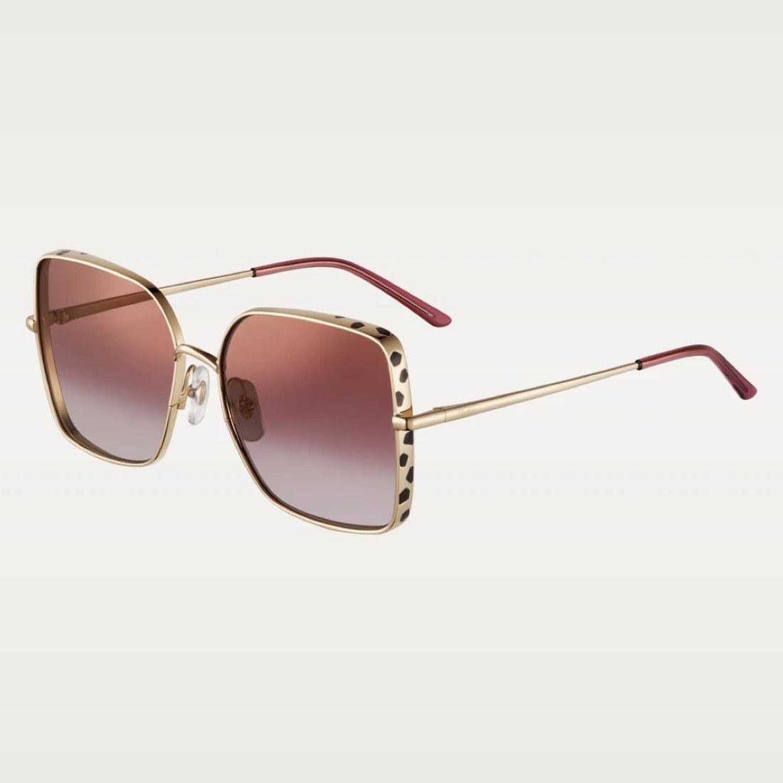 Les lunettes de soleil CARTIER CT0299S-003 de la collection Panthère offrent une allure élégante et féminine, grâce à leurs lignes carrées oversize et à leur spoiler métallique sophistiqué. Intégrant des détails en émail noir qui reproduisent les taches de la panthère, ces lunettes sont aussi dotées d’un manchon en acétate pour un confort optimal et d’une finition précieuse en or. Un ravissement pour les yeux!