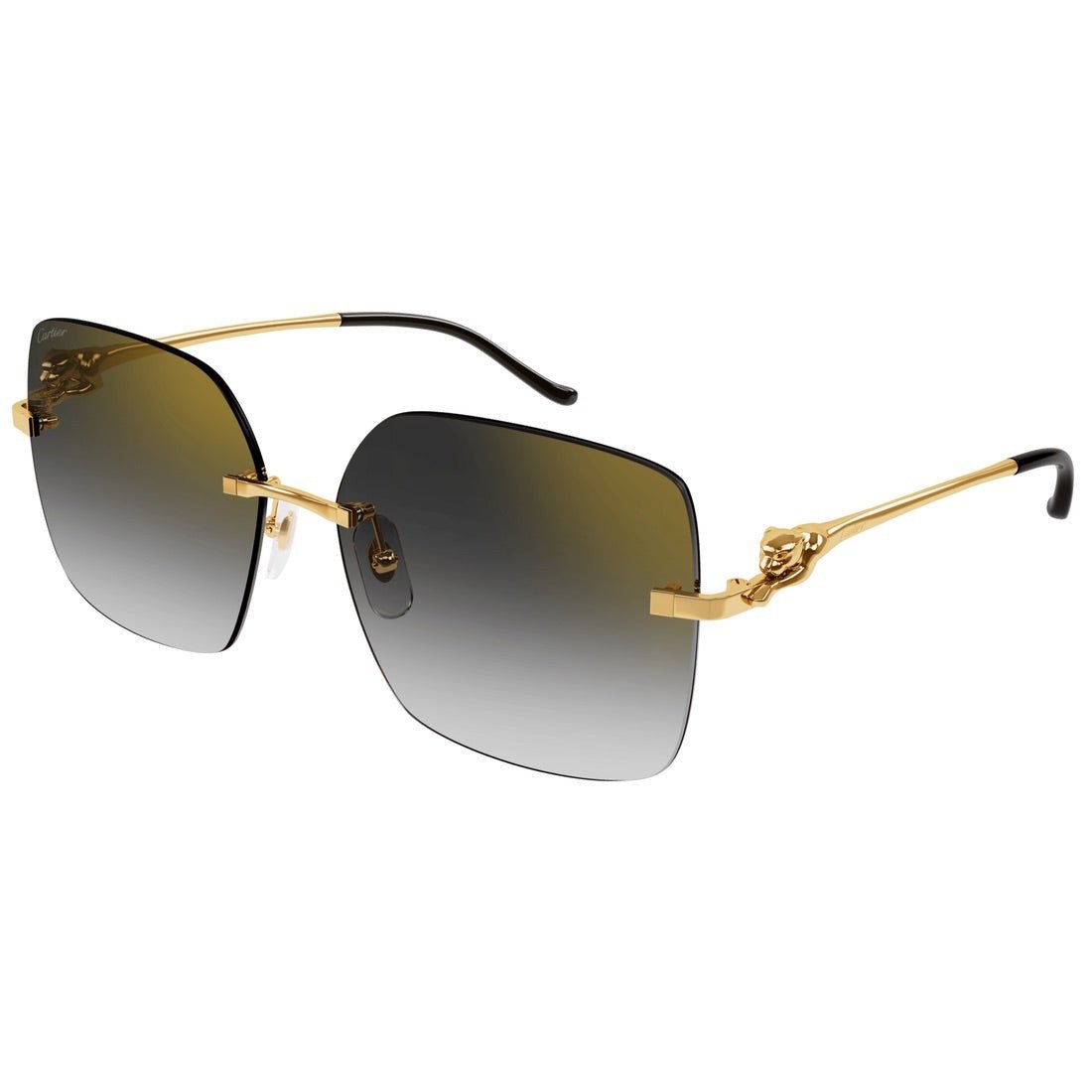 CARTIER - CT0359S-001 est une monture solaire élégante et féminine qui vous fera rayonner ! Son métal finement sculpté sur les branches, ses manchons en acétate et sa finition précieuse en or vous séduiront ! Profitez de votre look joyeux et dynamique !